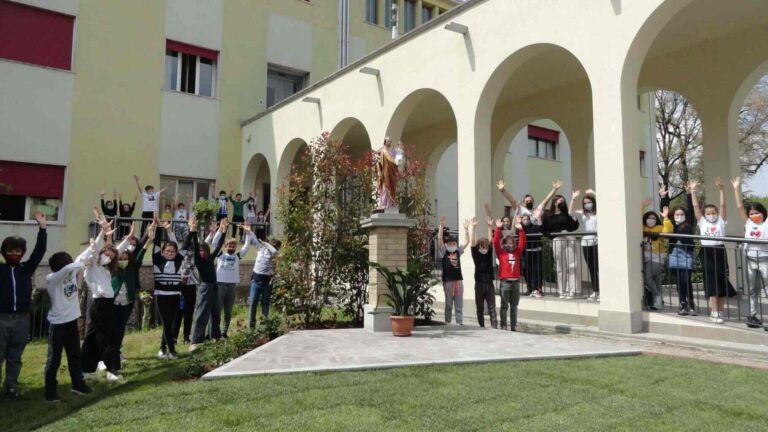 Sabato 1 maggio dopo la S.Messa celebrata nel teatro. La statua resterà a custodia dei cortili dei ragazzi e ricordo di questo anno dedicato a San Giuseppe.