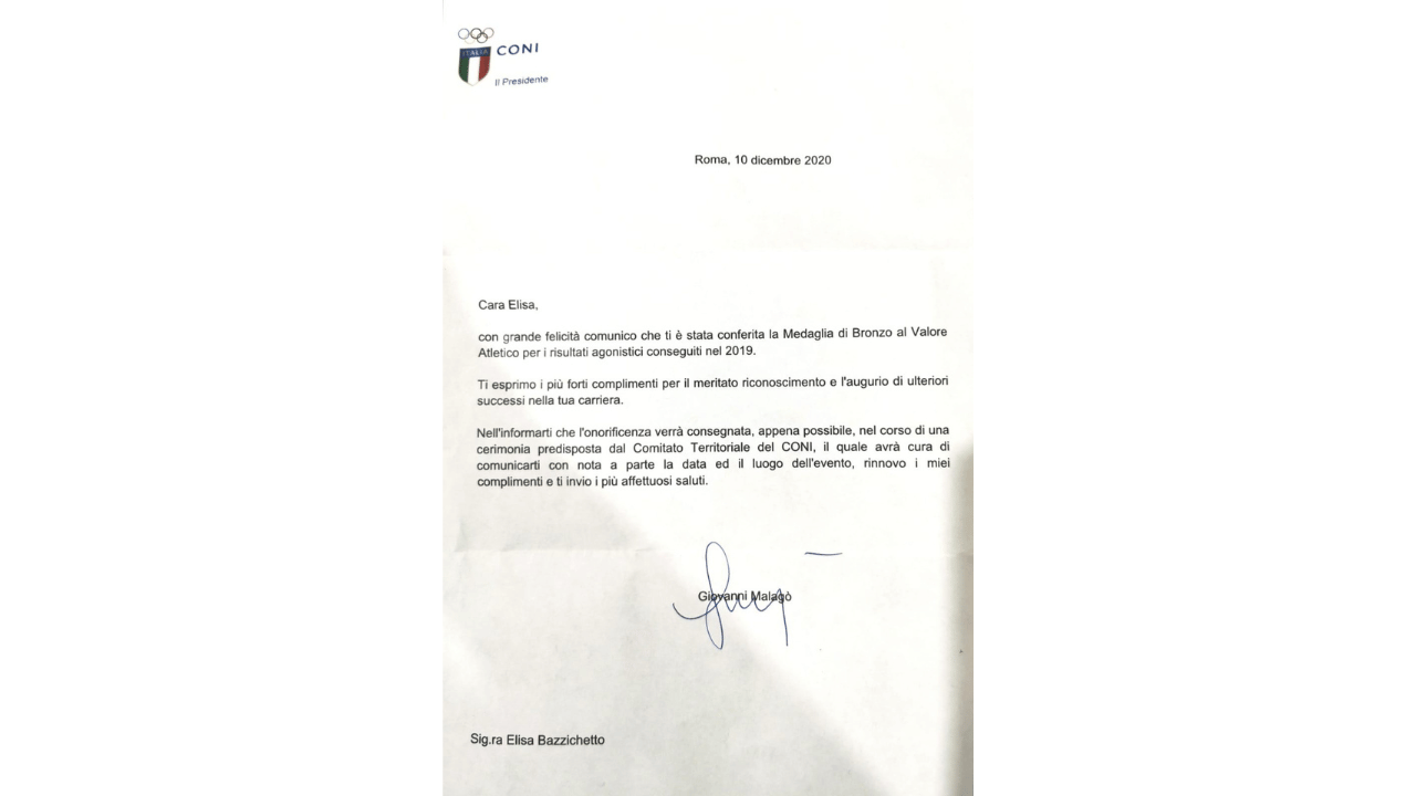 L’intero Istituto si congratula con la studentessa Elisa Bazzichetto per il prestigioso premio ricevuto, la Medaglia di Bronzo al Valore Atletico.