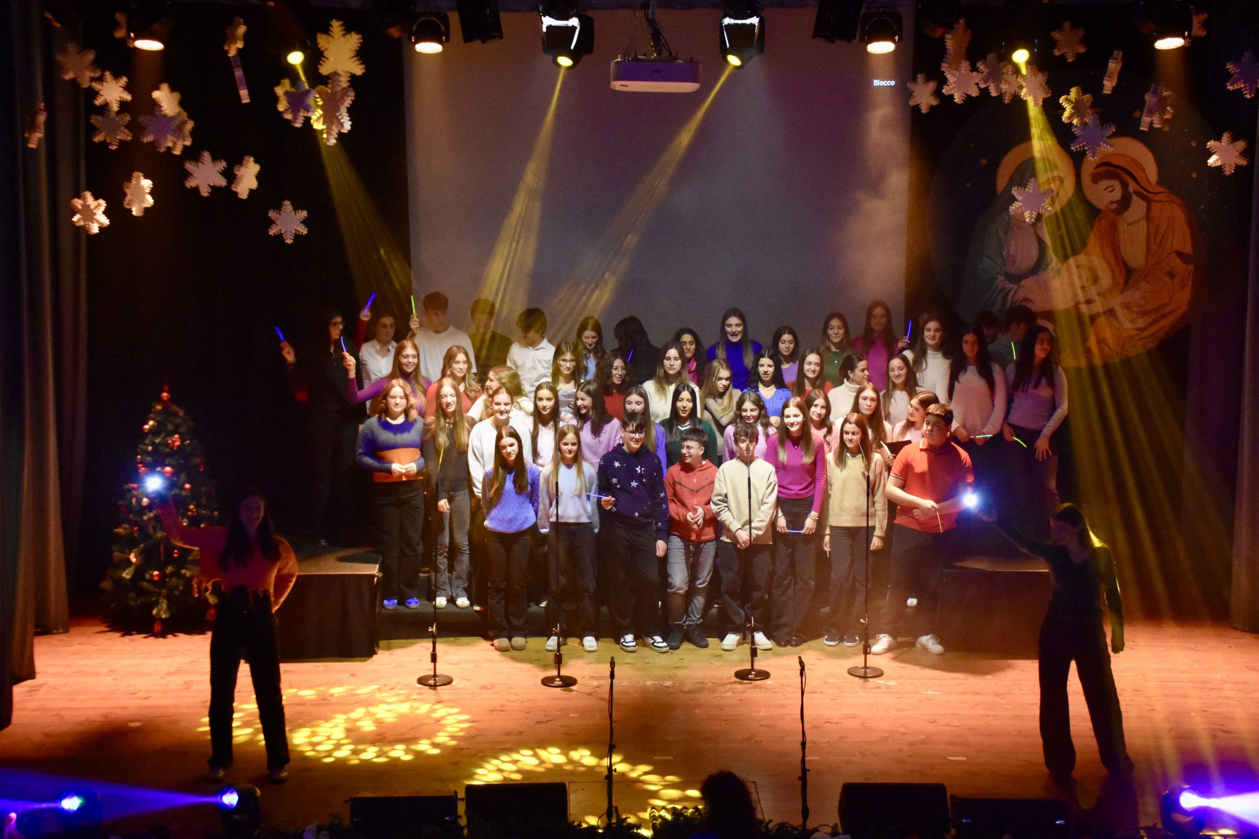 Lo spettacolo si è aperto con l’esibizione del gruppo di teatro della scuola, che ha interpretato il celebre “Canto di Natale” di Charles Dickens. In seguito, si sono alternati i pensieri e le canzoni proposti dalle varie classi dell’Istituto sul tema della luce.