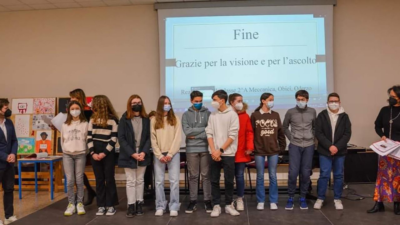 Nella mattinata dell’8 marzo, le classi terze medie del nostro istituto hanno preso parte alla premiazione del concorso intitolato “Un filo di voce per raccontare”, promosso dall’assessorato all’istruzione e servizi sociali del comune di Oderzo, risultando vincitori. Tema del concorso era la violenza sulle donne.
