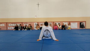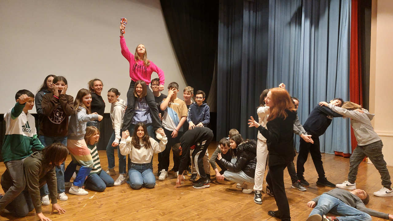 A seguire, ciascuna classe ha potuto essere protagonista, salendo sul palco e partecipando al workshop teatrale. Nel corso del laboratorio, i ragazzi hanno svolto esercizi di respirazione, spazialità, improvvisazione e creatività, oltre che di conversazione spontanea in lingua tedesca, sia tra loro che insieme con la madrelingua.