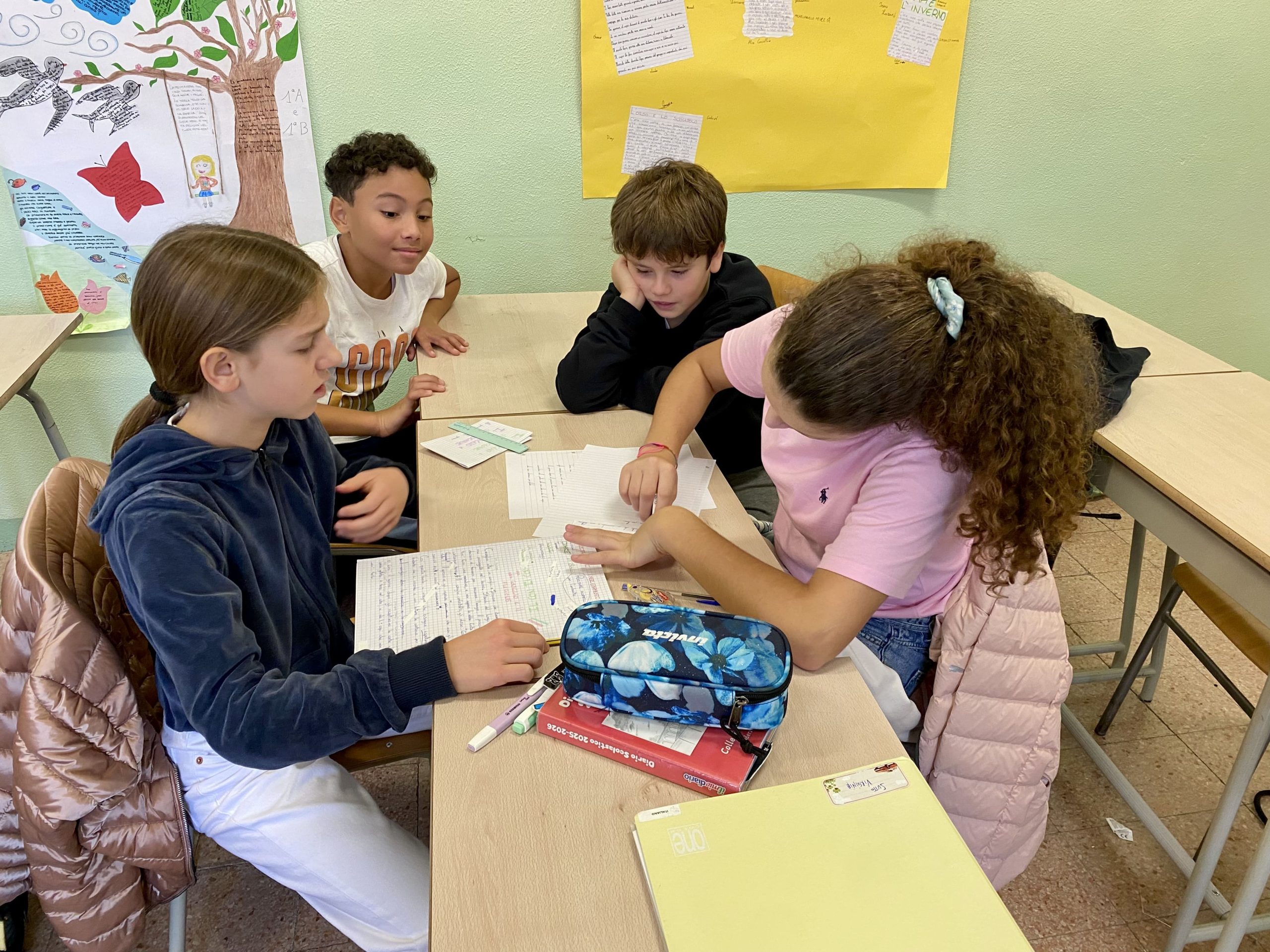 Durante il processo creativo, gli studenti hanno discusso, condiviso idee e combinato la propria fantasia con riflessioni personali, trasformando semplici spunti in vere e proprie storie ricche di significato. Questo lavoro non solo ha permesso loro di sviluppare competenze narrative e collaborative, ma ha anche favorito un clima di ascolto e partecipazione all’interno del gruppo classe.