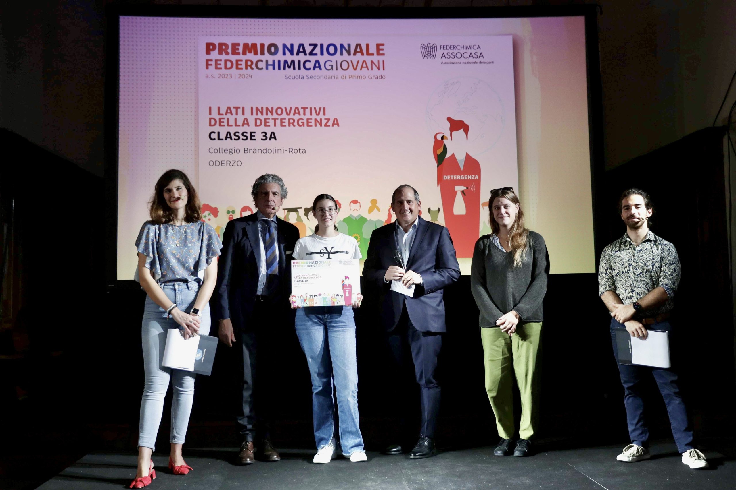 La cerimonia di premiazione si è tenuta giovedì 26 settembre al Museo Nazionale della Scienza e della Tecnologia Leonardo da Vinci di Milano ed ha visto sul podio due classi terze del Collegio Brandolini Rota, coordinate dalle prof.sse Betto Viola e Olivi Irene: 3^ B, vincitrice del primo premio con il progetto “Agrofarmaci” e 3^A , anch’essa sul gradino più alto, con il progetto “I lati innovativi della detergenza”.