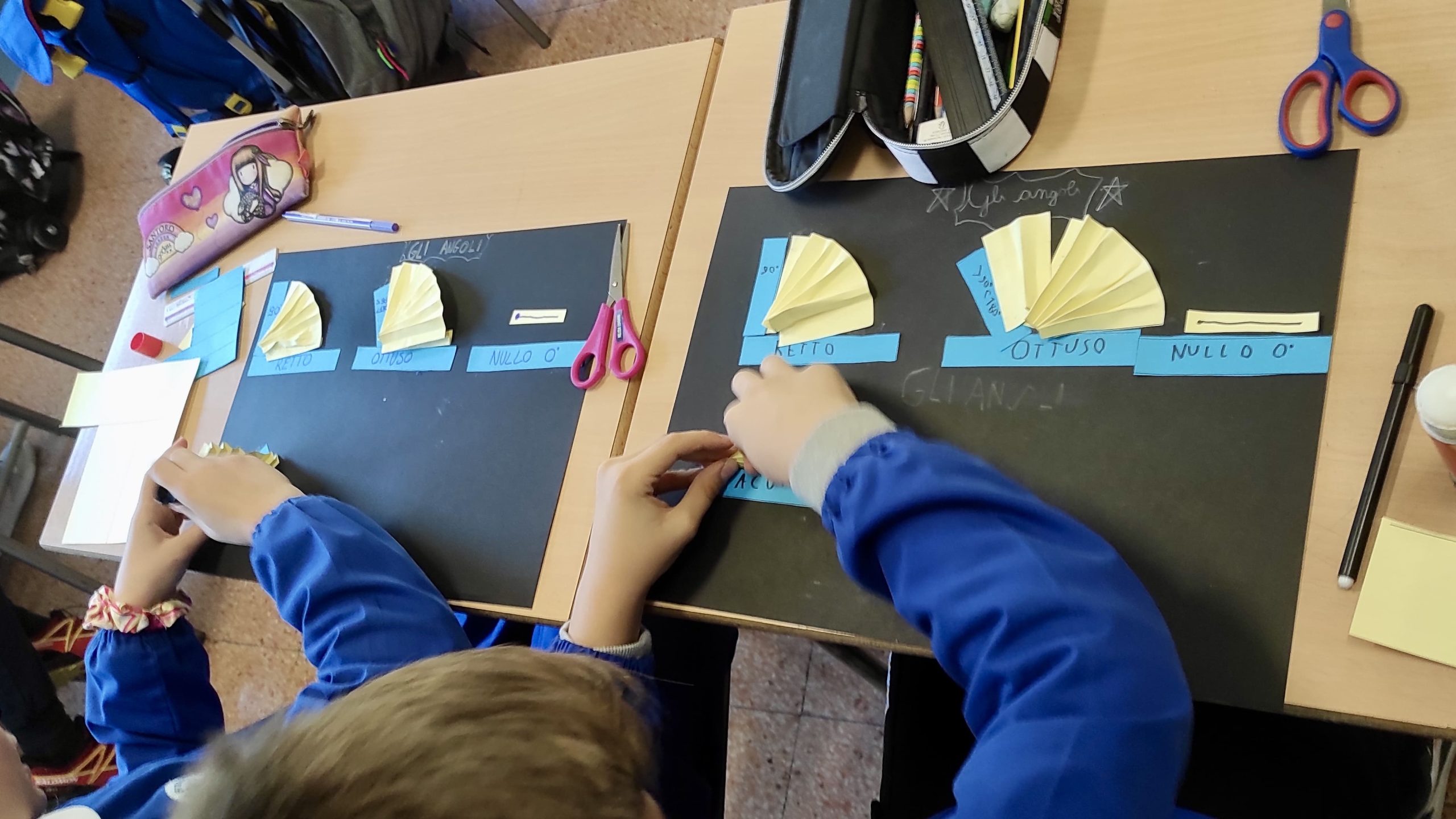 In classe quarta, abbiamo intrapreso un’attività pratica per comprendere meglio gli angoli, costruendoli con le nostre mani.