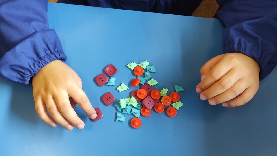E’ stato bello dividere i bottoni per tipo e poi cercare anche l’intruso, il bottone diverso!