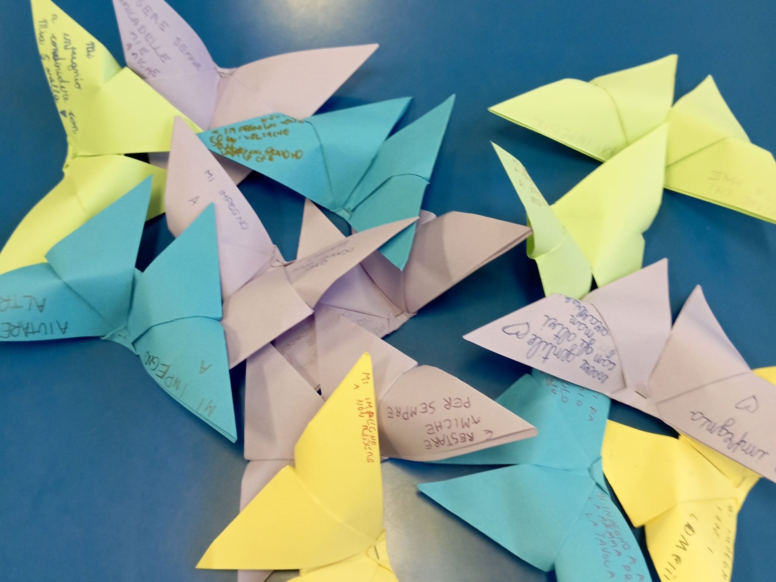 Per questo, ognuno di noi ha deciso di impegnarsi concretamente, realizzando delle farfalle che rappresentano il nostro desiderio di essere più cortesi l’uno con l’altro e di portare avanti piccoli gesti di amore e attenzione verso gli altri.