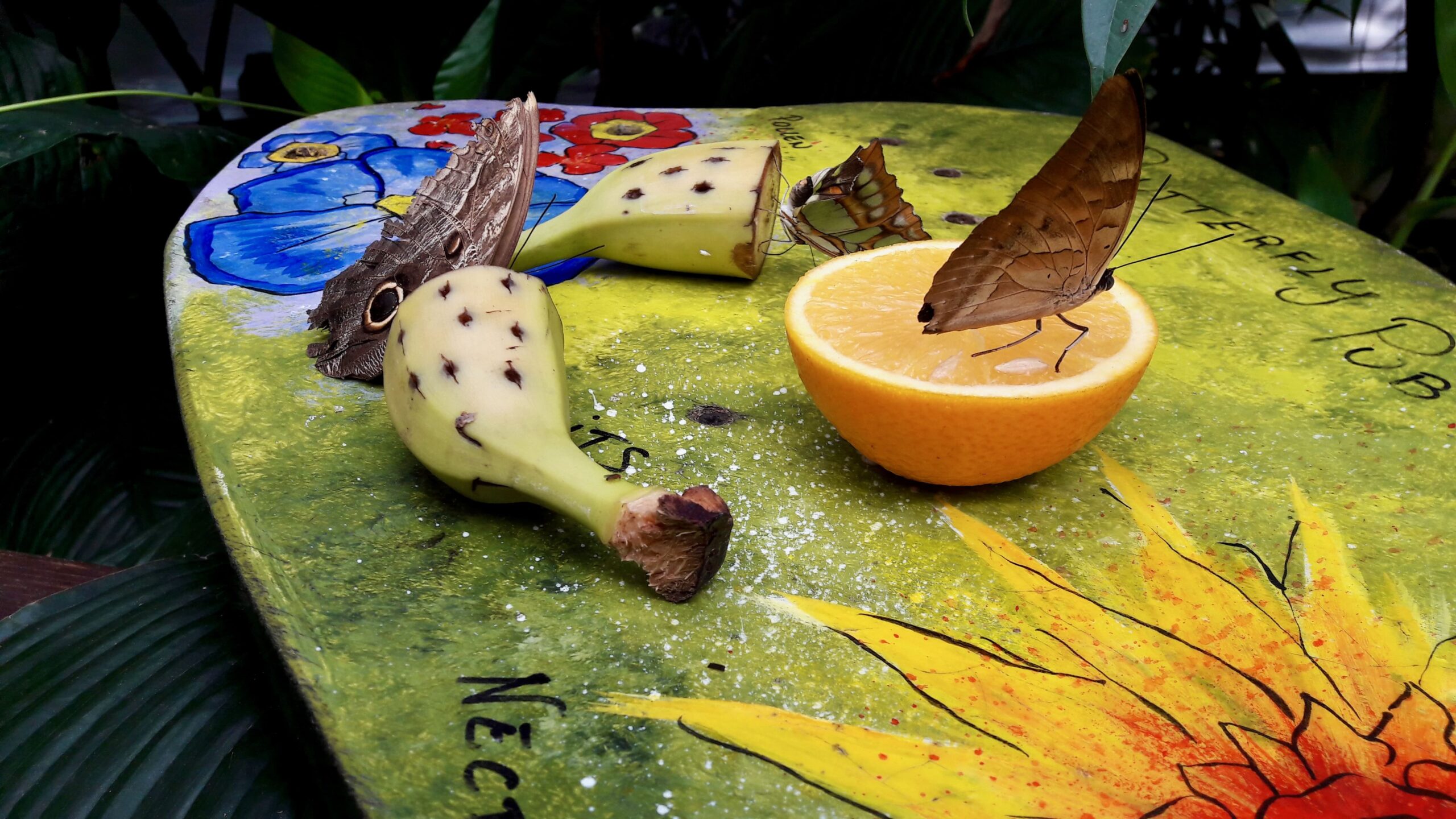 È stato possibile vedere da vicino anche due cocorite che accompagnano il volo delle farfalle con la loro melodia.