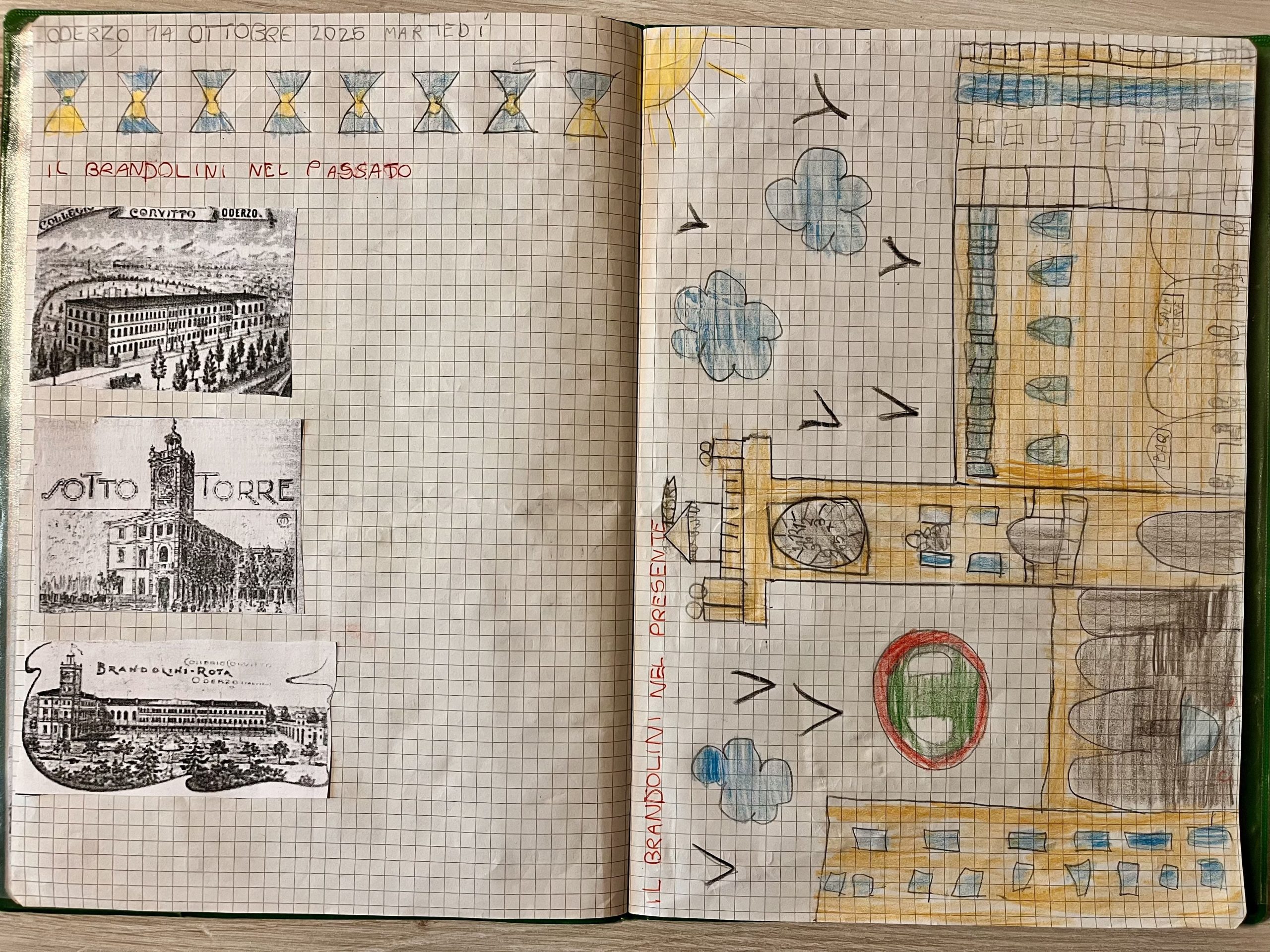 Abbiamo così recuperato alcune foto storiche dell’edificio scolastico, le abbiamo messe in ordine cronologico e abbiamo osservato insieme le tante trasformazioni avvenute negli anni: nuove costruzioni, ampliamenti, modifiche agli spazi esterni. È stato sorprendente vedere come un luogo familiare possa raccontare una storia lunga e ricca di cambiamenti.