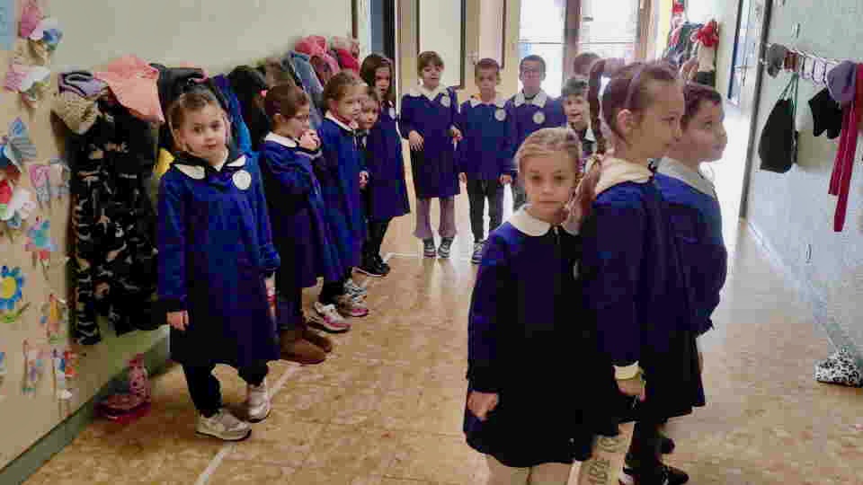 Per capire il significato di regione interna, esterna e confine abbiamo guardato ben bene una grande figura disegnata a terra e poi abbiamo giocato mettendoci all’interno, all’esterno o sul confine della figura.