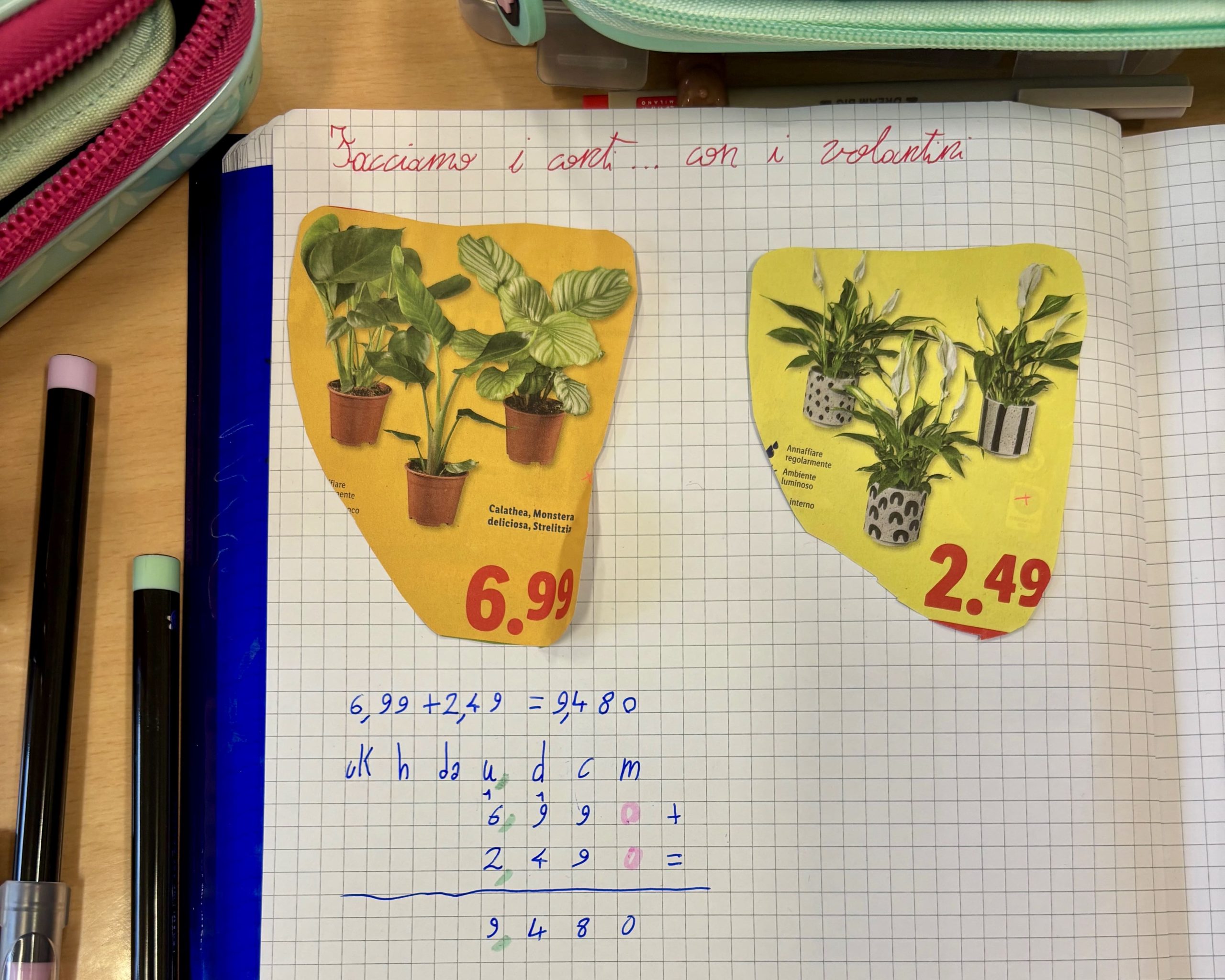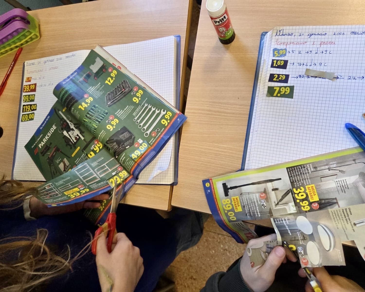 Attraverso i volantini del supermercato abbiamo osservato con attenzione i prezzi, confrontato importi diversi, scomposto numeri decimali nelle loro parti e svolto somme con la virgola in modo concreto, dinamico e divertente. Ogni attività è diventata un’occasione per riflettere, fare ipotesi e verificare insieme, trasformando un argomento nuovo in un’esperienza coinvolgente.