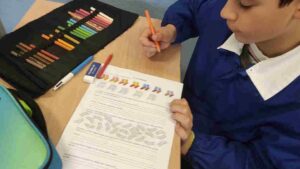 Nelle classi prime stiamo imparando cos’è un percorso. Così abbiamo trasformato la classe in una piccola città con percorsi e strade e ci siamo dati indicazioni a vicenda per arrivare da un posto all’altro.