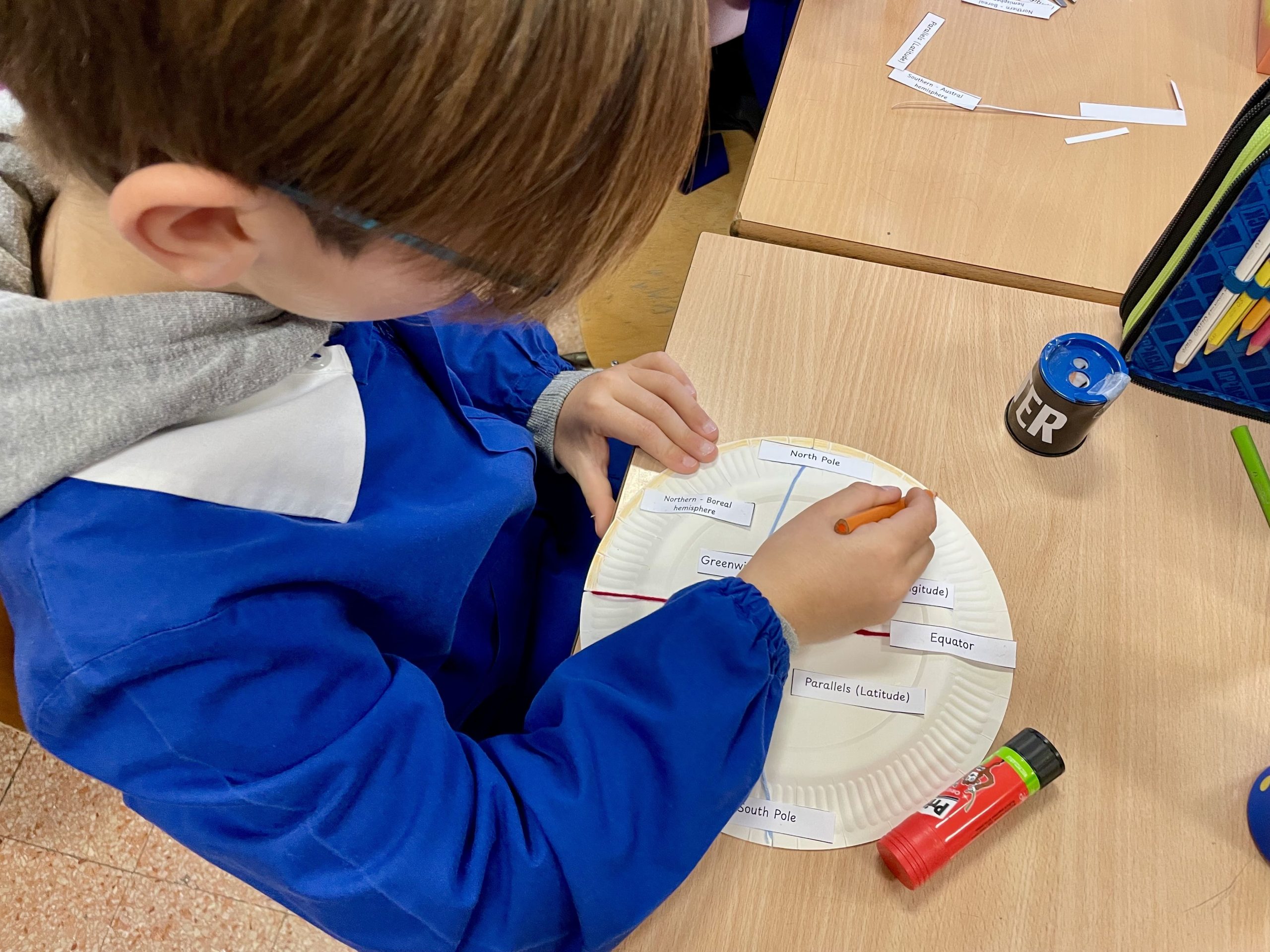 Utilizzando del filo di lana, hanno tracciato il nostro “Equator” e il “Greenwich meridian”, comprendendo passo dopo passo come questi elementi aiutino a orientarsi sulla Terra. In questo modo hanno potuto dividere il globo in “Boreal hemisphere” e “Austral hemisphere”, osservandone caratteristiche e differenze.